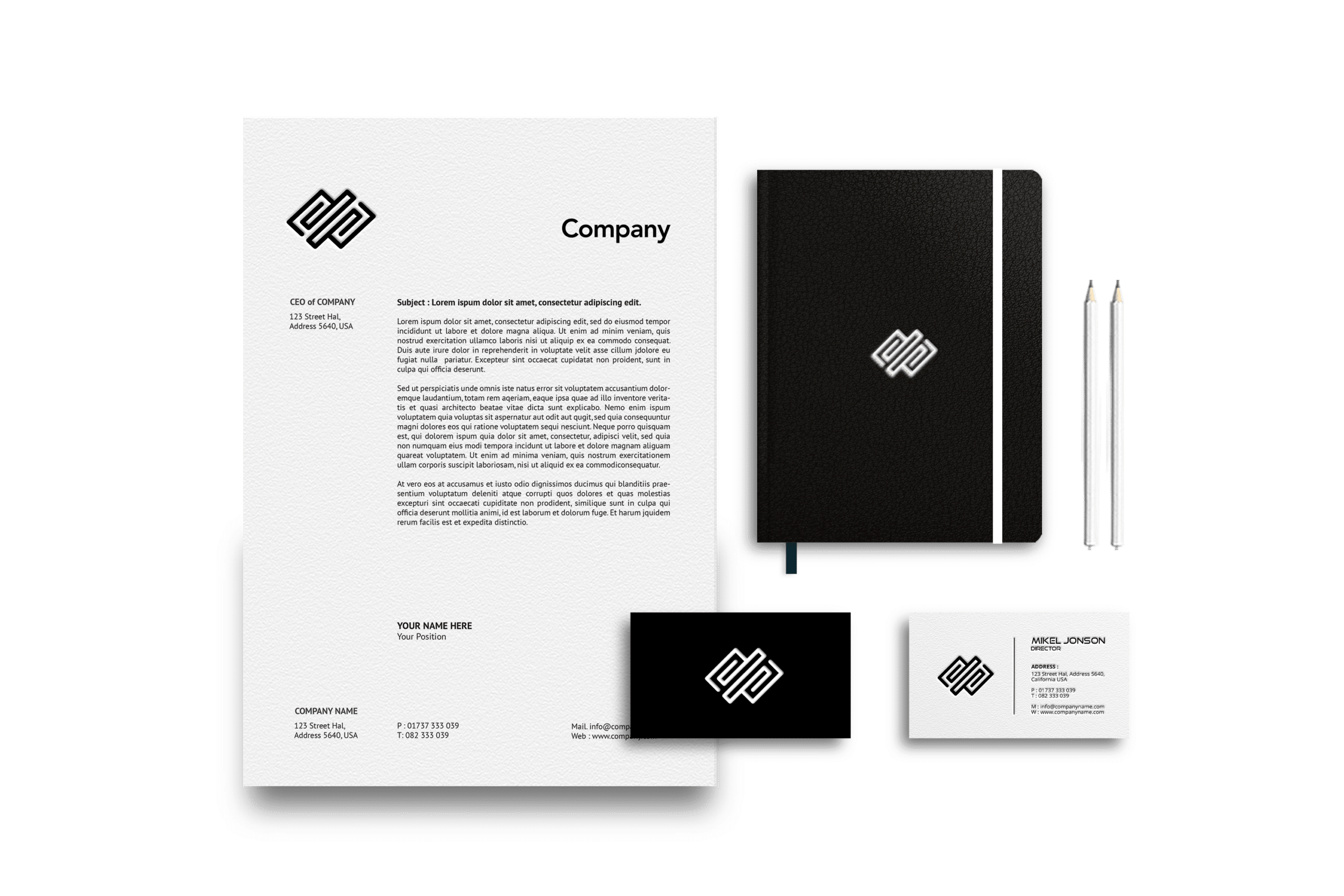 Professionelle Geschäftsausstattung mit Briefpapier, Notizbuch und Visitenkarten im Corporate Design